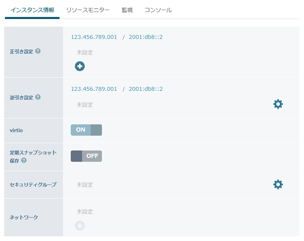正引き設定逆引き設定 IPアドレスの逆引きドメインを設定できます。